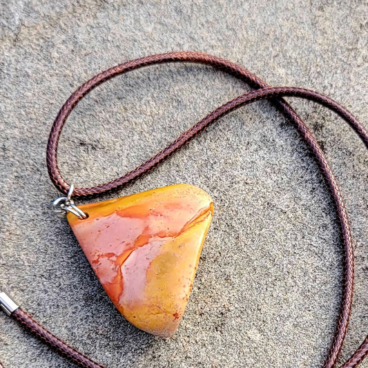 BEAUTIFUL DESERT JASPER PENDANT WITH AN INTRICATE COLOR PATTERN AND BOLD STYLE..