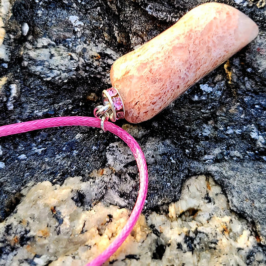 BEAUTIFUL UNIQUELY SHAPED ROSE QUARTZ PENDANT.