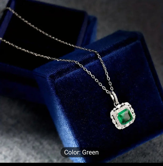 BEAUTIFUL SILVER-PLATED 4-CLAW EMERALD ZIRCON PENDANT.