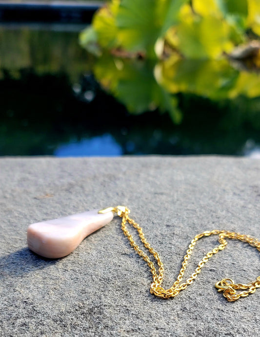 Elegant semi translucent pink milky quartz pendant. Perfect bold statement piece. Go ahead and make that statement without saying a word. If you prefer to be low-key, give it as a gift to that special someone...we have something else just for you!