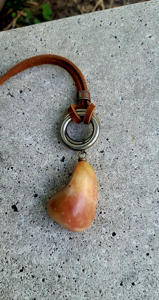 THIS YELLOW-GREEN SERPENTINE GEMSTONE PENDANT IS SURE TO DELIGHT.