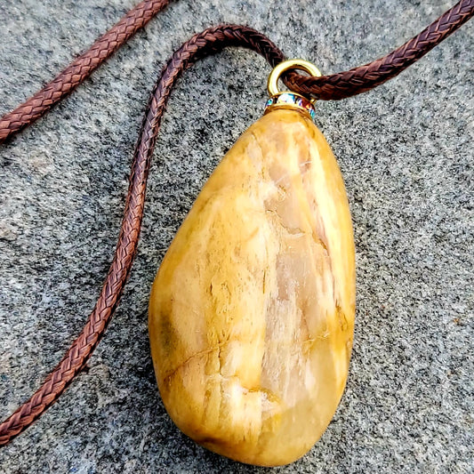 Golden Yellow quartz pendant. When you get this, take a good look into the stone and be amazed by the intricate patterns that were formed hundreds of thousands of years ago.