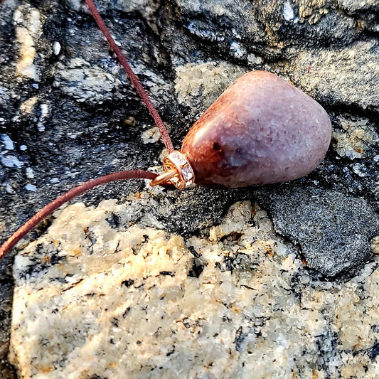 Mesmerizing Strawberry Quartz pendant. Hold it up to reveal what looks like strawberry seeds suspended in glass. Great piece for you or as a gift to someone special