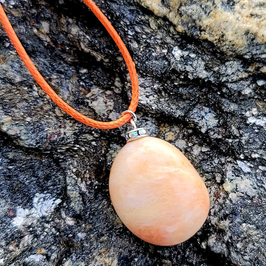 Orange quartz gemstone pendant. This aventurine based quartz piece is simple, straightforward and beautiful. great addition to your wardrobe, or to give as a gift.