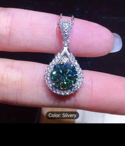 BEAUTIFUL SILVER-PLATED 4-CLAW EMERALD ZIRCON PENDANT.